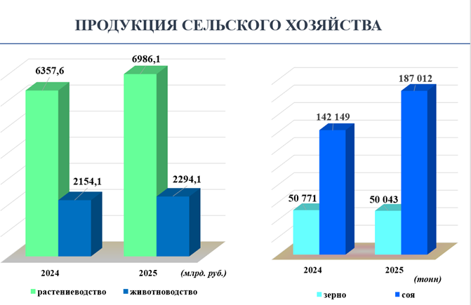 Под урожай 2026 года подготовлено земли в количестве 66600 га. Засыпано семян в полном объеме, в том числе 12129 тонн сои и 4816 тонн зерновых культур, что к уровню 2025 года составляет соответственно 105,3 % и 99,6 %.